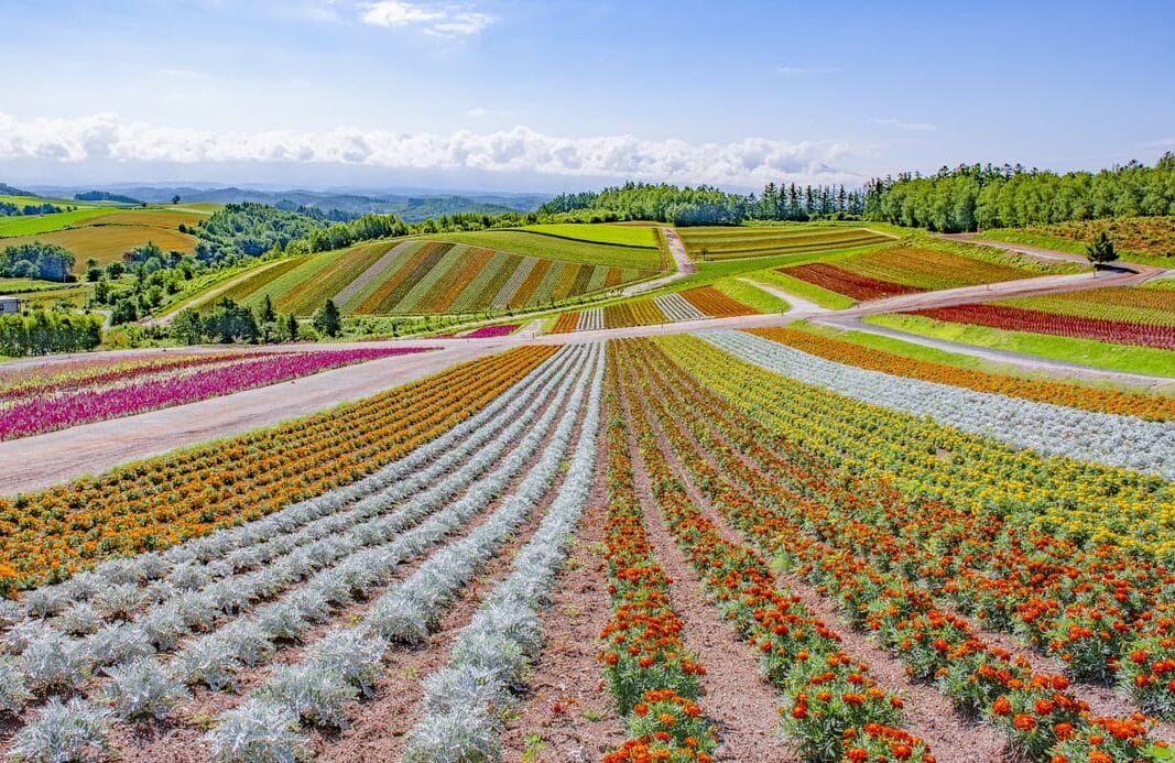 Located in the picturesque town of Biei, Shikisai no Oka, or the Hills of Seasonal Colors, unfolds across approximately 7 hectares in the Furano area. It boasts an extensive array of seasonal flowers that paint the landscape with vibrant hues.