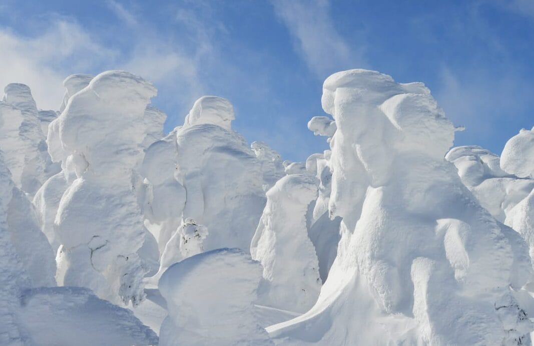 Dubbed by various names like “snow monsters” or “ice monsters,” the extraordinary natural occurrence called “juhyo” graces Mount Zao’s upper subalpine areas every winter, leaving onlookers spellbound.