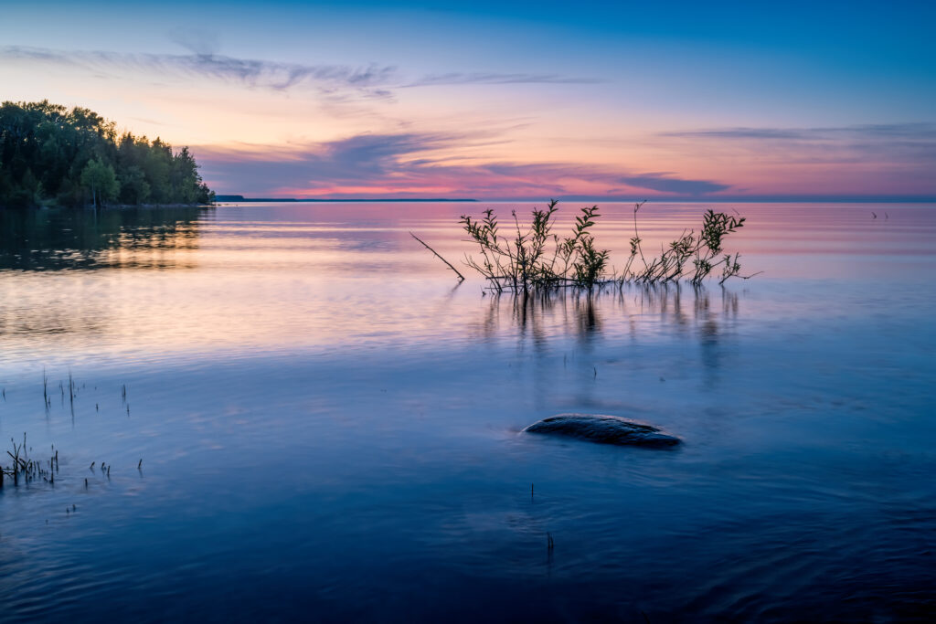 Sunset landscape with Lake Huron in Bruce Peninsula, Georgian Bay, Ontario, Canada.